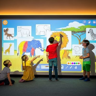 アニマルペインティングゲーム—インタラクティブなアニマルペインティングゲームは、これまでのプロジェクションの中で最高品質であるだけでなく、反応の良いゲームでもあります。動物の選択はカスタマイズ可能で、ハードウェアは耐久性があり、長く楽しめます。あなただけのウォールプロジェクションアートソリューションを、今すぐあなたの空間に!